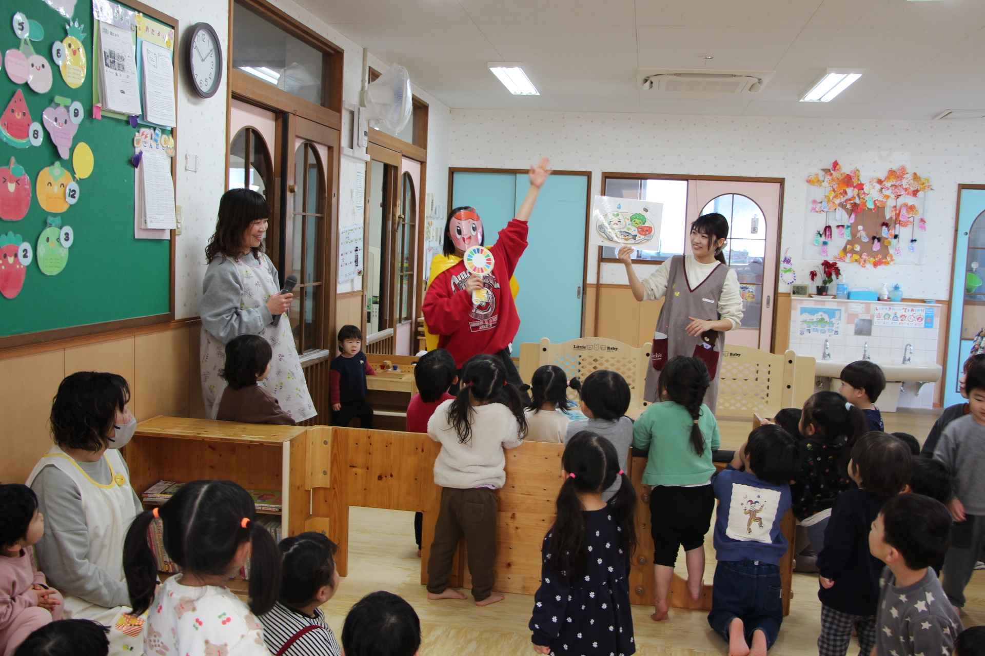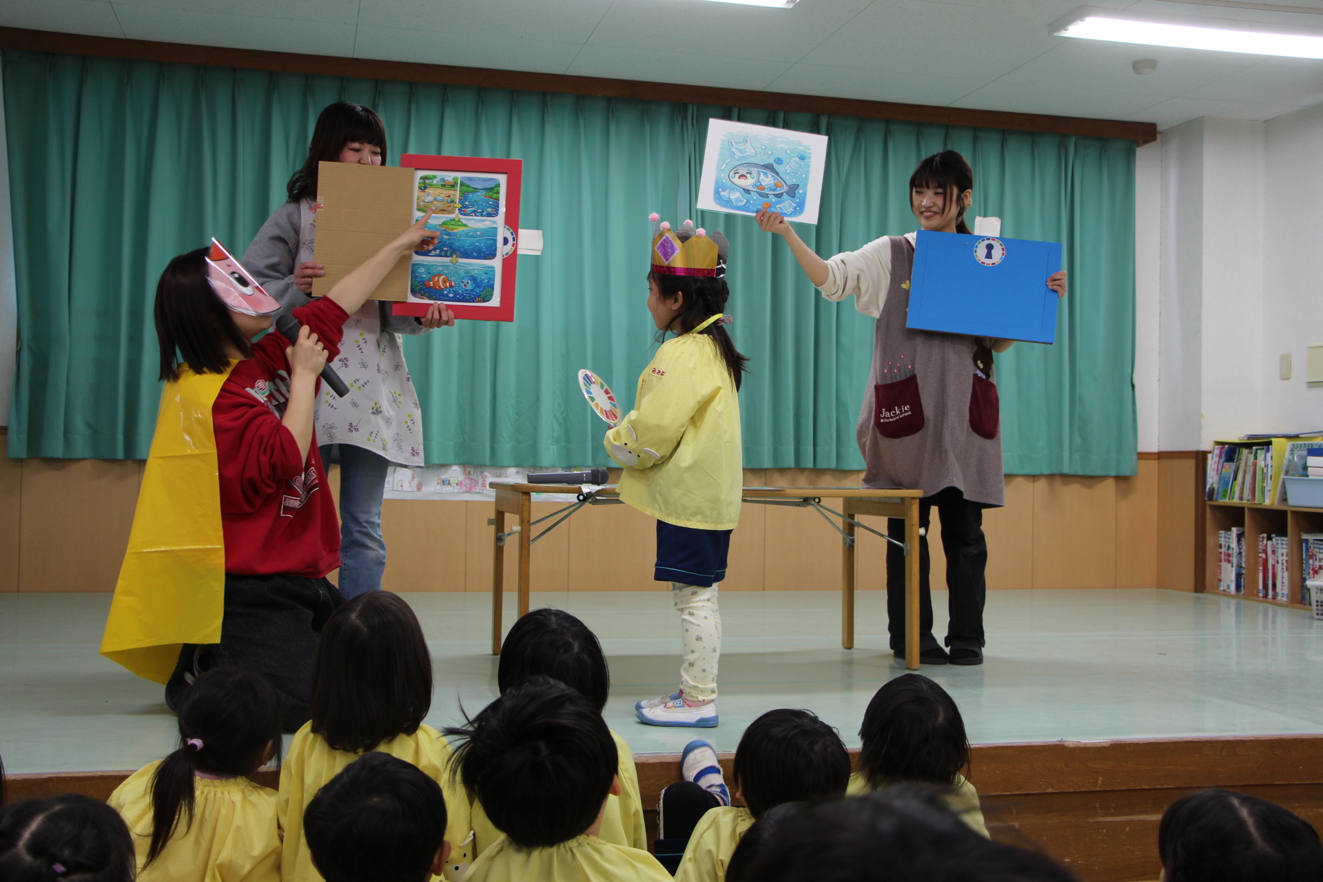 保育者の出し物では、毎月違ったテーマのSDGs  に沿った内容を取り入れています。